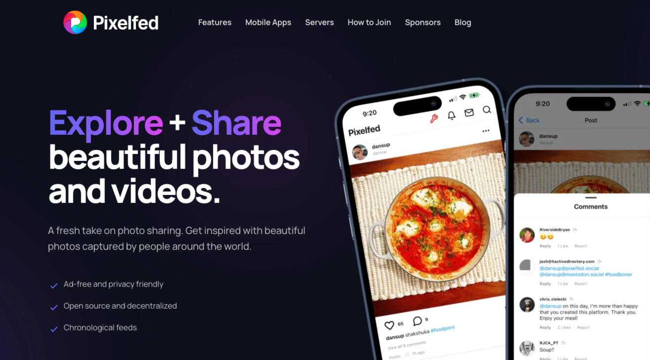 There is no central headquarters — it’s a decentralized project maintained by a global open-source community rather than a corporate entity.👥 Who Uses Pixelfed?Photographers & Visual Creators: People who want to share their images without intrusive ads or algorithms.Privacy-Conscious Users: Those who prefer not to be tracked or profiled by big tech companies.Fediverse Enthusiasts: Users who engage with other decentralized platforms like Mastodon, PeerTube, and Friendica thanks to ActivityPub interoperability.Tech-Savvy Communities & Hobbyists: Many early users are technically inclined and value control over their data and how content is shared.It’s much smaller than mainstream social networks like Instagram; community activity varies by instance and user interest.👍 Pros of Pixelfed🌐 Decentralized & User-ControlledYou can join a community instance or even host your own, which gives more control over your data and community rules.No central authority harvesting or monetizing personal data.🔒 Privacy-FocusedNo algorithmic content manipulation (feeds are strictly chronological).No third-party tracking or advertising.📱 Familiar Social FeaturesUsers can post photos, albums, stories, likes, hashtags, and direct messages — much like Instagram, but without ads.Official mobile apps for iOS and Android launched in early 2025 to widen accessibility.🤝 Fediverse InteroperabilityPixelfed users can interact across a broader decentralized social ecosystem, connecting with people on other ActivityPub-compatible platforms.🛠 Open SourceThe code is freely available and community-contributed, so developers can improve it or run their own versions.👎 Cons & Limitations🧠 Learning Curve & InstabilityDecentralization means the experience can vary across servers — some may be poorly maintained or have limited activity.Setting up an instance or troubleshooting federation issues can be technically challenging.📣 Less Active InteractionSome users report fewer comments and community engagement compared to mainstream networks.⚠️ Content Moderation ChallengesBecause instances are independently run, moderation standards differ — which can result in inconsistent user experiences, especially around content filtering.(Image credit: Pixelfed)
